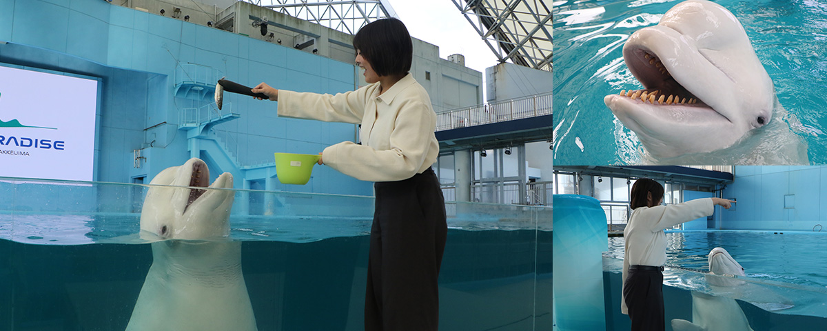 シロイルカにお魚をあげながら、心を通わせる特別な時間を過ごしてみませんか?