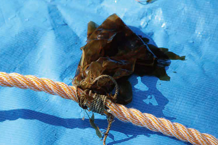 水族館「うみファーム」にて、お客さまご自身でワカメの苗を植え付けいただきます。