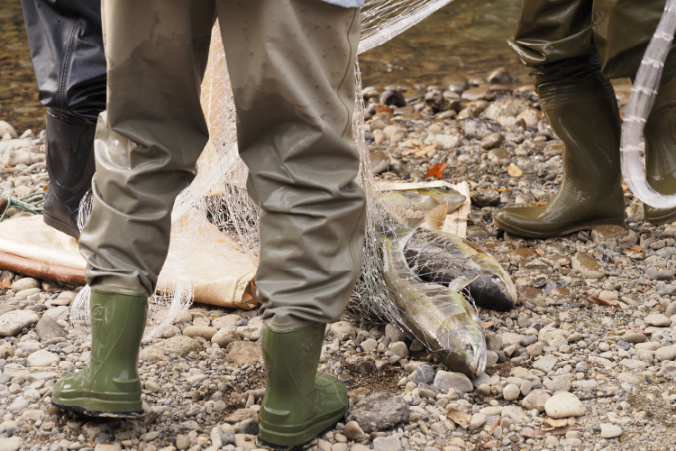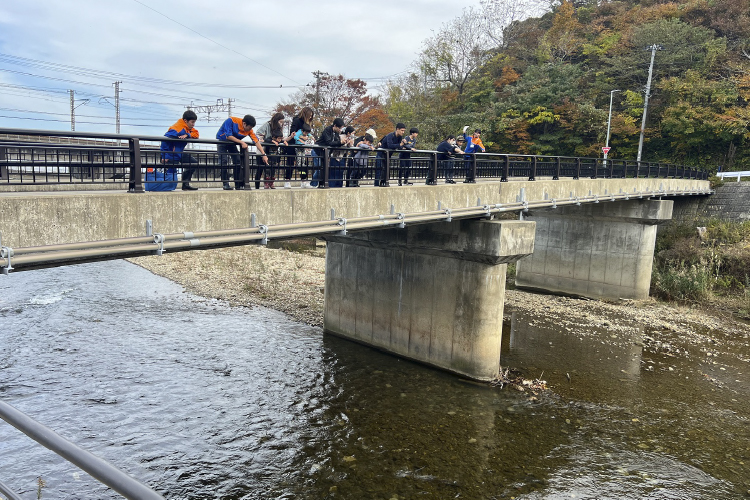11月9日・16日の2日間、サケの遡上観察会を実施しました。両日ともにサケの遡上をしっかりと観察!サケの力強い泳ぎや、遡上のためのジャンプを間近で見たあと、伝統のサケ漁を見学し、川に併設している「桑取川さけ採卵加工施設」にて孵化放流事業の取り組みについてレクチャーを受けました。桑取川漁業協同組合の平井さんによると、今年は海水温が例年より2~3℃高く、例年の半分ほどしか遡上を確認できていないとのことです。また、遡上してきたサケは人工授精させたあと、3月まで毎日孵化したサケのお世話をするそうで、放流したサケがまた桑取川に戻ってくるためのケアの大変さについて学びました。
