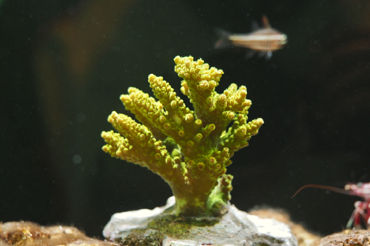 2F「きらめきリーフ」では、固い骨格を持つ「造礁サンゴ」を飼育展示し、時間をかけて生育していく姿を通じてサンゴの魅力やサンゴ礁の役割を伝えています。
