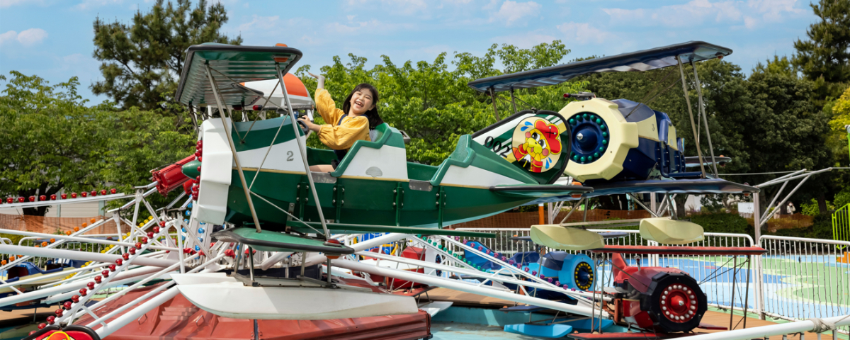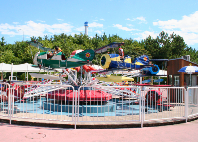 レッド男爵の飛行機に乗り大空へ旅立つ...そんな物語を体験してみよう!子どもたちに人気が高いこの「レッドバロン」。でも、操縦かんの操作でアップダウンの加減が違うので大人もかなり楽しめるはず。