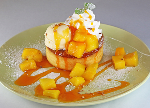 マンゴーとオレンジソースのパンケーキ with バニラアイスクリーム 1,300円