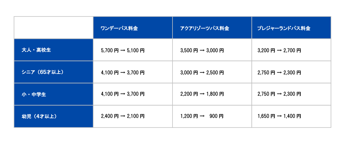 ※年間パスポートへの切り替えに関しては、チケット売場でのご購入に限ります。